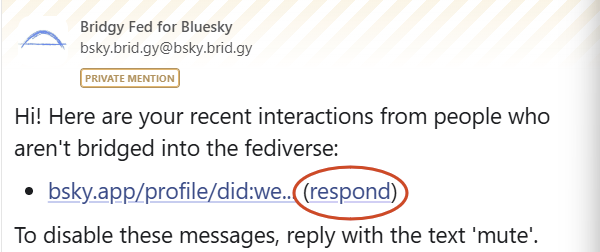 Last year, we launched a feature for Bridgy Fed that sent a DM of an hourly digest of interactions that we couldn't bridge back to your native platform. While that gave you visibility into interactions you normally wouldn't have, you still had to have an account in the other ecosystem to reply or repost them.